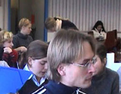 Leute mit der gleichen Sprachkombination bilden eine Art Klasse. Das heisst, alle die zum Beispiel von Französisch ins Deutsche dolmetschen, haben ein bis zwei Mal pro Woche zusammen Unterricht. Ich mit Spanisch bin nicht in einer fixen Klasse, sondern habe einen individuellen Stundenplan. Natürlich besuche ich alle Spanisch-Lektionen, aber ich kann auch eine Deutsch/Französisch-Lektion besuchen, wenn ich mein Französisch trainieren will.